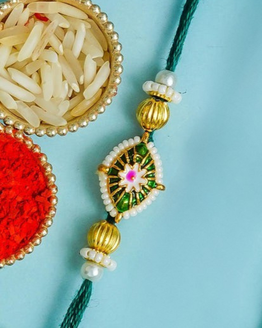 Designer Rakhi & Bracelet Set with Free Kumkum & Chawal