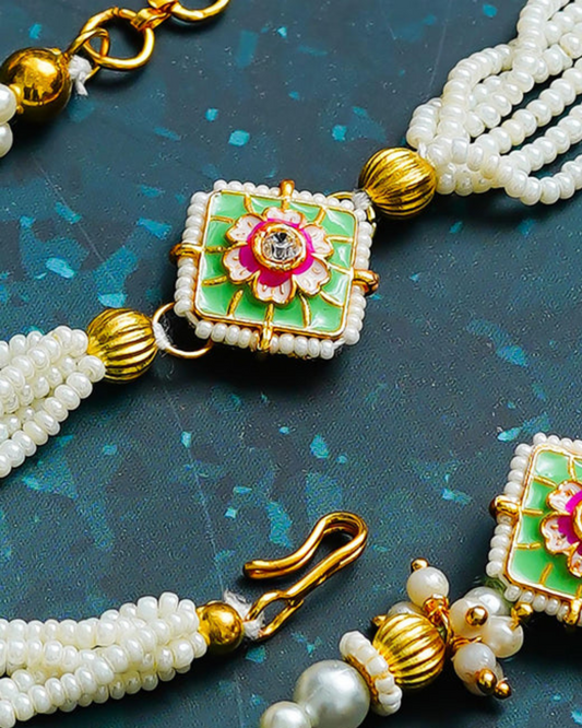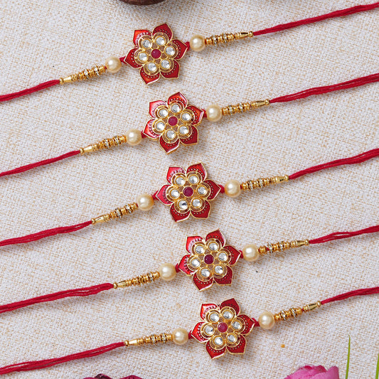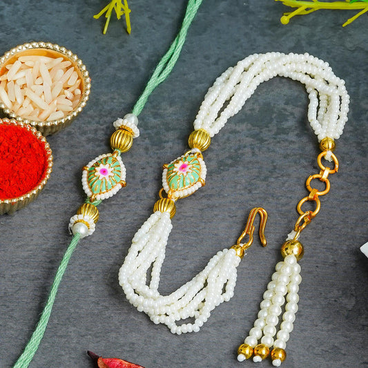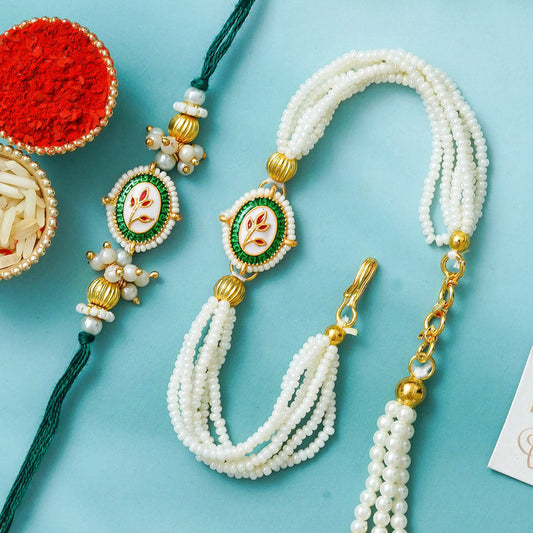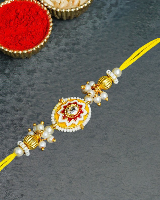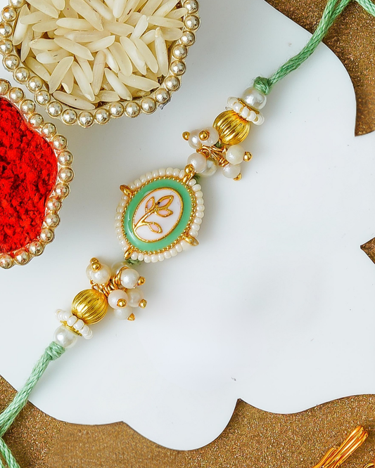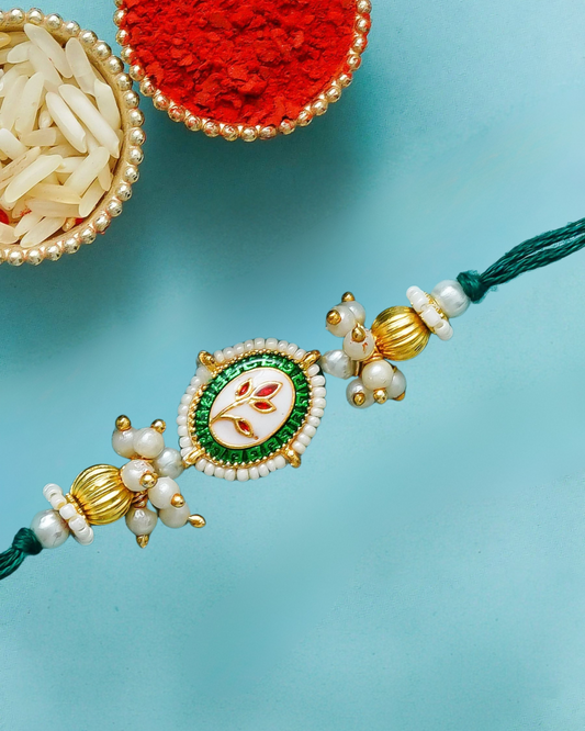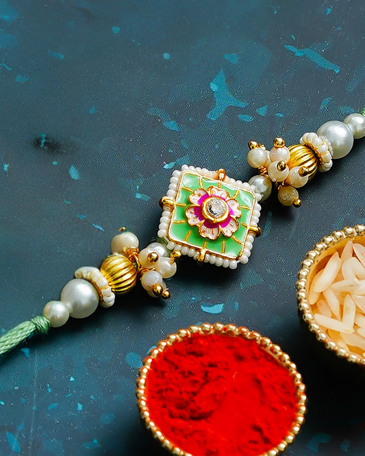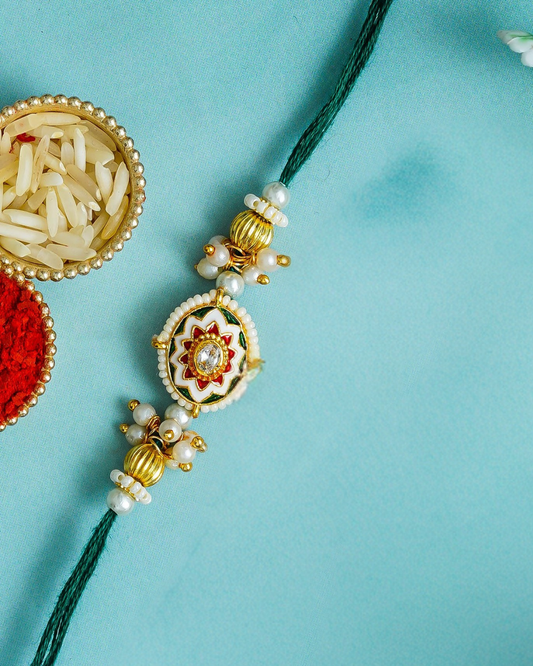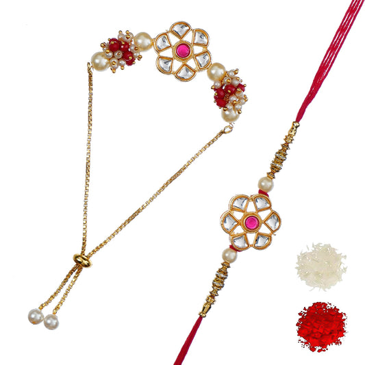 Designer Kundan Rakhi & Bracelet Set with Free Chawal & Kumkum