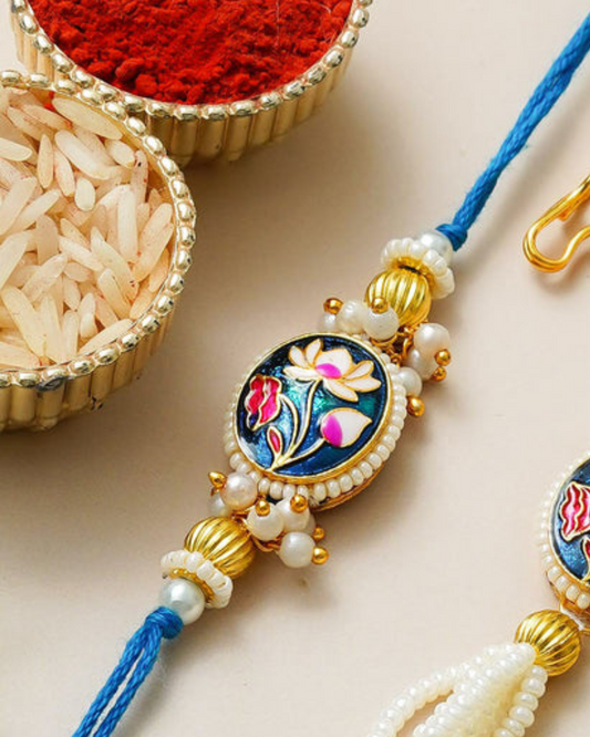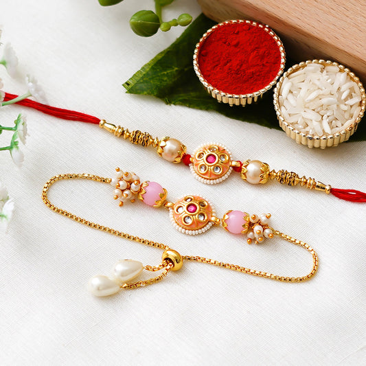 Couple Traditional Rakhi Set with Free Chawal & Kumkum